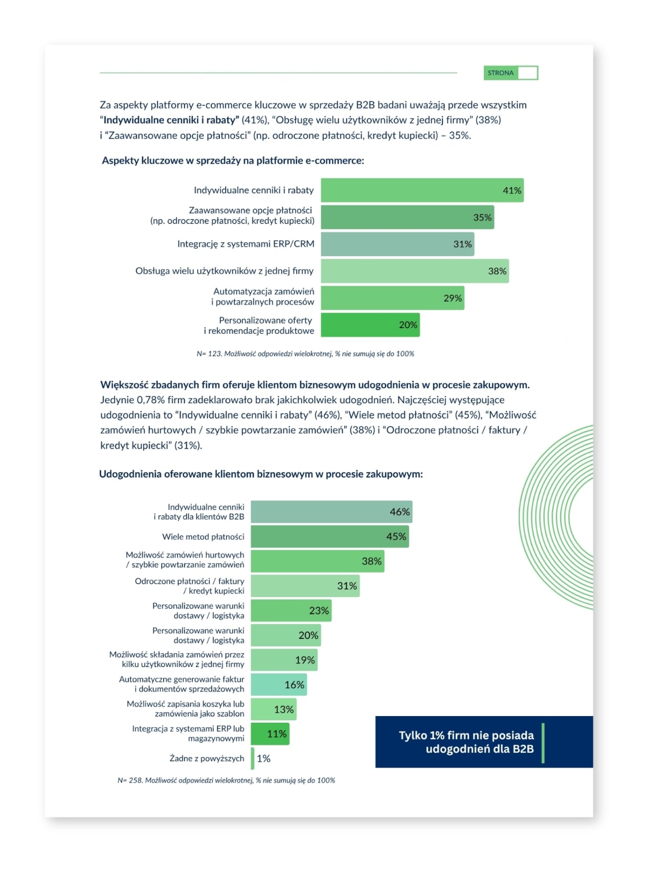 Zbadaliśmy ponad 250 firm sprzedających online dla B2B. Raport podzieliliśmy na kilka kluczowych obszarów - od pierwszej do ostatniej strony dbając o Twój komfort czytania. Do tego raportu będziesz wracać wielokrotnie!
